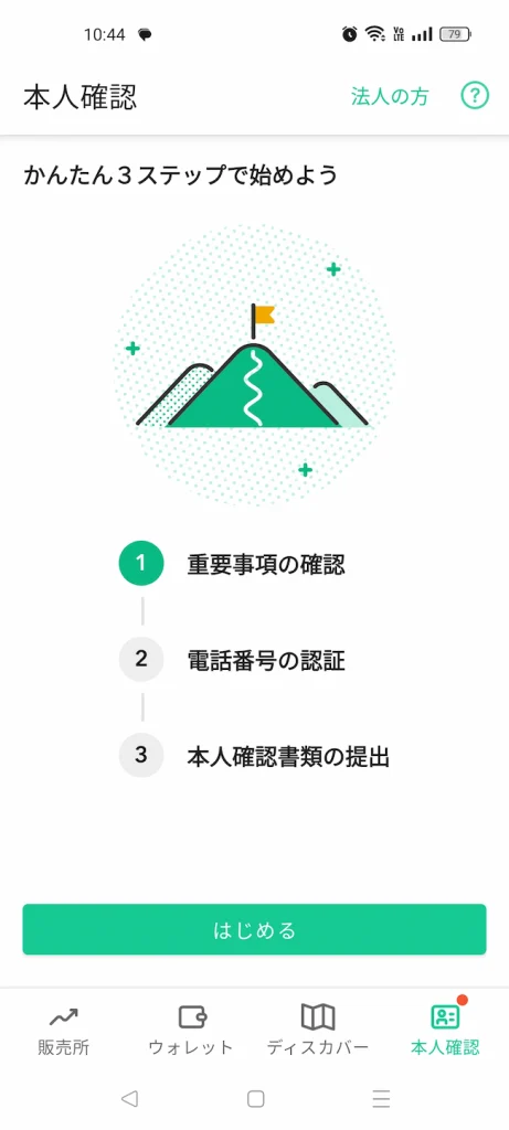 アカウントを作成した後は、本人確認が必要です。本人確認の手順は、以下のような流れです。