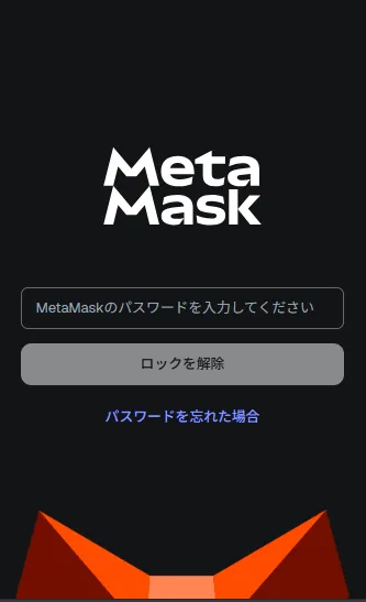 メタマスクのアイコンをクリックして起動します。